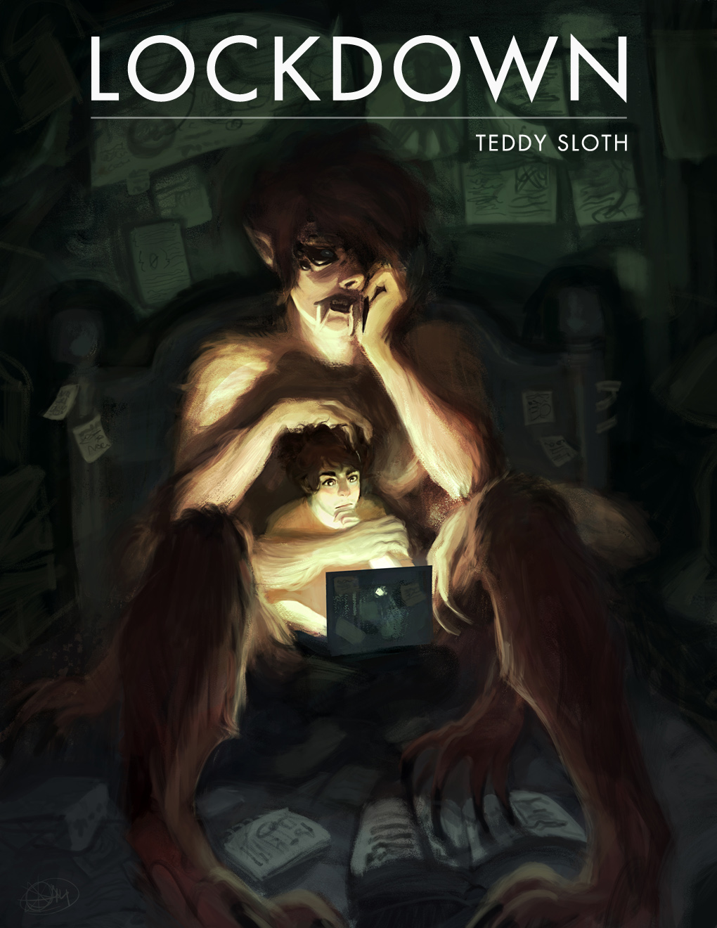 Skeila stays in the shadows as they walk hand-in-claw, carefully steering Sid away from the pools of streetlight collecting on the steep sidewalks. Tonight it's chilly enough to make Sid glad his bodyguard is so big and furry; they walk so closely that he's kept toasty on one side. The walk is tense; Sid understands there's some unnamed danger in being seen. The spider has a knack for discerning threats. Before even spotting a pedestrian or seeing headlights turn onto their road, she will vanish from his side, his hand holding for a moment a chitinous finger, then nothing, trailing out into air. He continues alone, propelled by inertia. If he comes to an intersection he won't know which way to go. Low-grade panic sets in after a minute of unaccompanied travel—is she… gone? Was this all just some kind of trip, some four-day arachnohallucinatory bender he's just now coming down from, alone, on the empty sidewalk of some late-night side street? But before the fear can really sink its teeth in, his fingertips fit into the padded palm of a claw taking his hand as silently as it left. Even after the third time the threat of being seen necessitates Skeila's absconsion, Sid feels exposed under the dim night sky reflecting the city like a spotlight, hoping that there are still eight spider eyes back there watching him (and nothing else…)